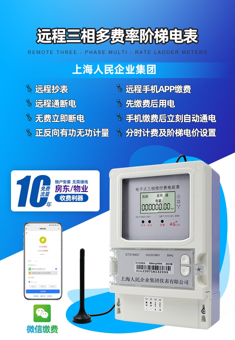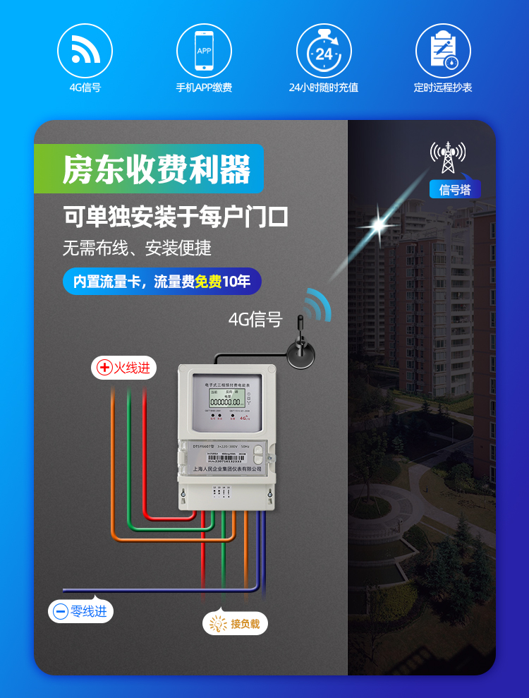 4G尖峰平谷预付费三相电表